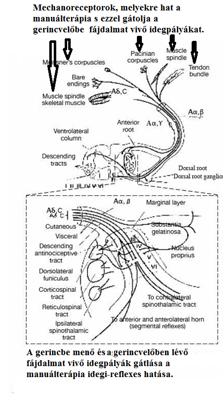 A reflexes mechanizmusú „gyógyhatás” lényege, hogy az ízületek normális mozgásainak helyreállásával, az azokhoz tartozó inakban és izmokban lévő proprioreceptorok (mechanoreceptorok) már „normális” jelzéseket adnak az idegrendszer felé. Ezáltal a kóros jelenségek, tünetek megszűnnek. (Emlékeztetek arra, hogy a fájdalomérző receptorok „ingerlődésére” az izomműködés gátlódik). Ez a jelenség a végtagokon is nagyon fontos, mint például közismert, hogy a térdízület bármilyen betegsége esetén a combizomzat sorvad. Ez nemcsak azért van, mert a fájós ízületet nem használjuk, hanem azért, mert az izomzat működése reflexes úton gátolt. A térdízületben panaszt okozó blokk megszűntetésével a combizomzat élettani működése is helyreáll. A beteg úgy érzi, megszűnt a „bénulása”. Hangsúlyozom, nem valódi bénulásról volt szó, hanem a reflexes gátlás megszűnéséről.