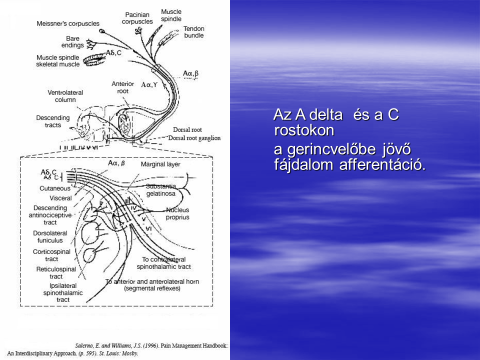 b) a gerincvelő, fájdalomreakciói” (bőrérzékenység, érzészavar (zsibbadás), izomfeszesség, vegetatív tünetek stb.) ,